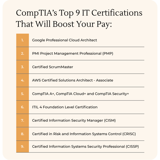 CompTIA, a world-renowned provider of vendor-neutral IT certifications, ranks Certified Cloud Security Professional (CCSP) in its list of top nine IT certifications that will boost your pay.