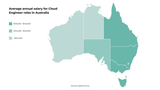 If you’re aiming to become a Cloud Engineer, you will be delighted to know there are currently 4,917 live jobs on Seek. With an average salary of $135,000AUD | $135,000NZD going beyond $150,000AUD for roles in Brisbane and $160,000NZD in areas of Auckland, it really is a lucrative career path.