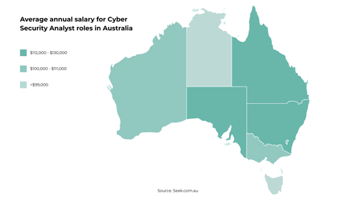 What you will likely be working towards in the beginning is a role like Cyber Security Analyst, which, according to Seek has a predicted increase of 38.9% job growth in the next 5 years. There are currently over 2,059 live jobs for Cyber Security Analysts across Australia and New Zealand with an average salary of $115,000AUD | $90,000NZD. This increases to $140,000AUD for those in South Australia and up to $102,500NZD for those in Auckland.