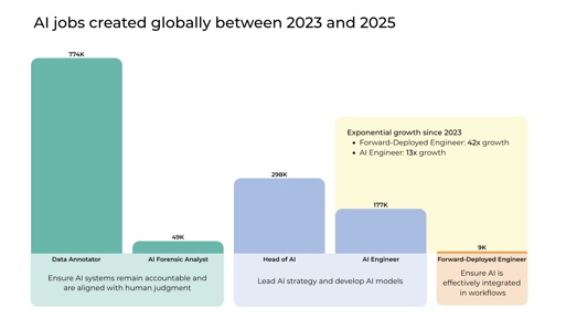 This professional sphere is where most of the AI-jobs growth is concentrated, with 1.3 million new roles - like AI Engineers, Forward-Deployed Engineers and Data Annotators - being created between 2023 and 2025.