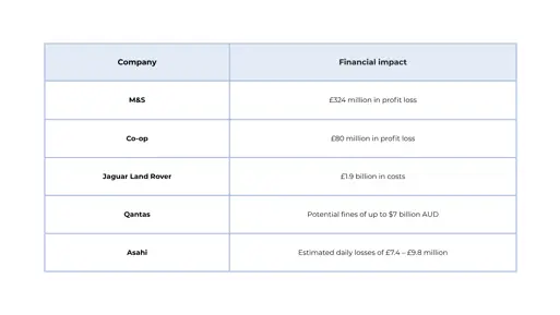 Within days, critical services, including click-and-collect, contactless payments and loyalty programmes, were offline. Analysts estimate the attack caused more than £60 million in immediate profit loss, wiped £1 billion from market value, and cost the retailer around £300 million overall.